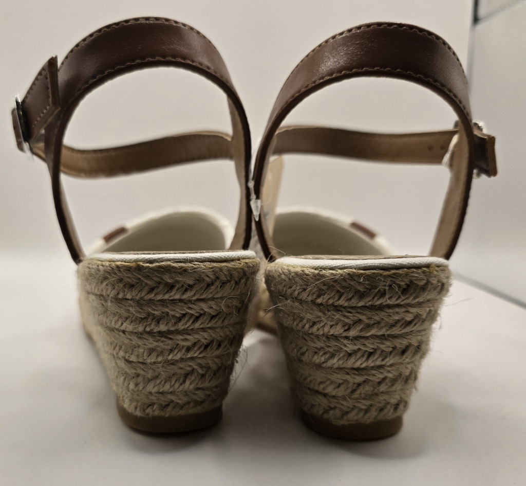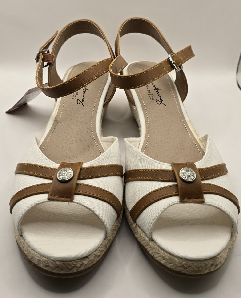 A Mustang fehér-bézs telitalpú szandál a nőies elegancia és a kényelmes viselet tökéletes harmóniáját nyújtja. A könnyű, mégis stabil telitalpú kialakítás elegánsan megemeli a lábat, miközben biztos tartást és kényelmet garantál egész napra. A fehér és bézs színek friss, nyári megjelenést kölcsönöznek, így remekül illik ruhákhoz, szoknyákhoz vagy akár farmerhez is.