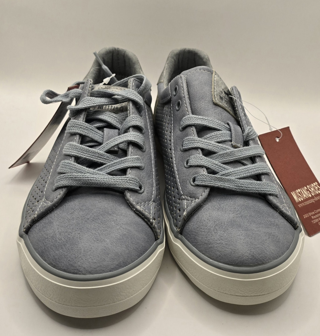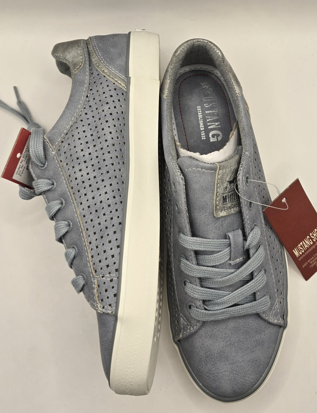 A Mustang világoskék perforált sneaker egy modern, nőies cipő, amely ötvözi a kényelmet és a stílust – tökéletes társ a tavaszi és nyári napokra.