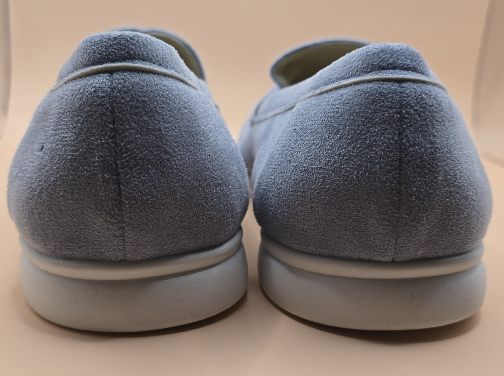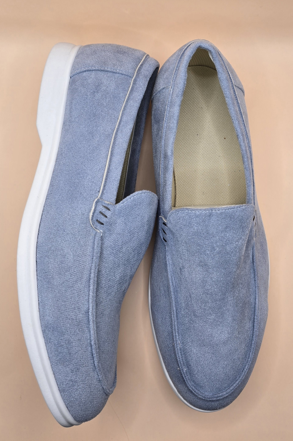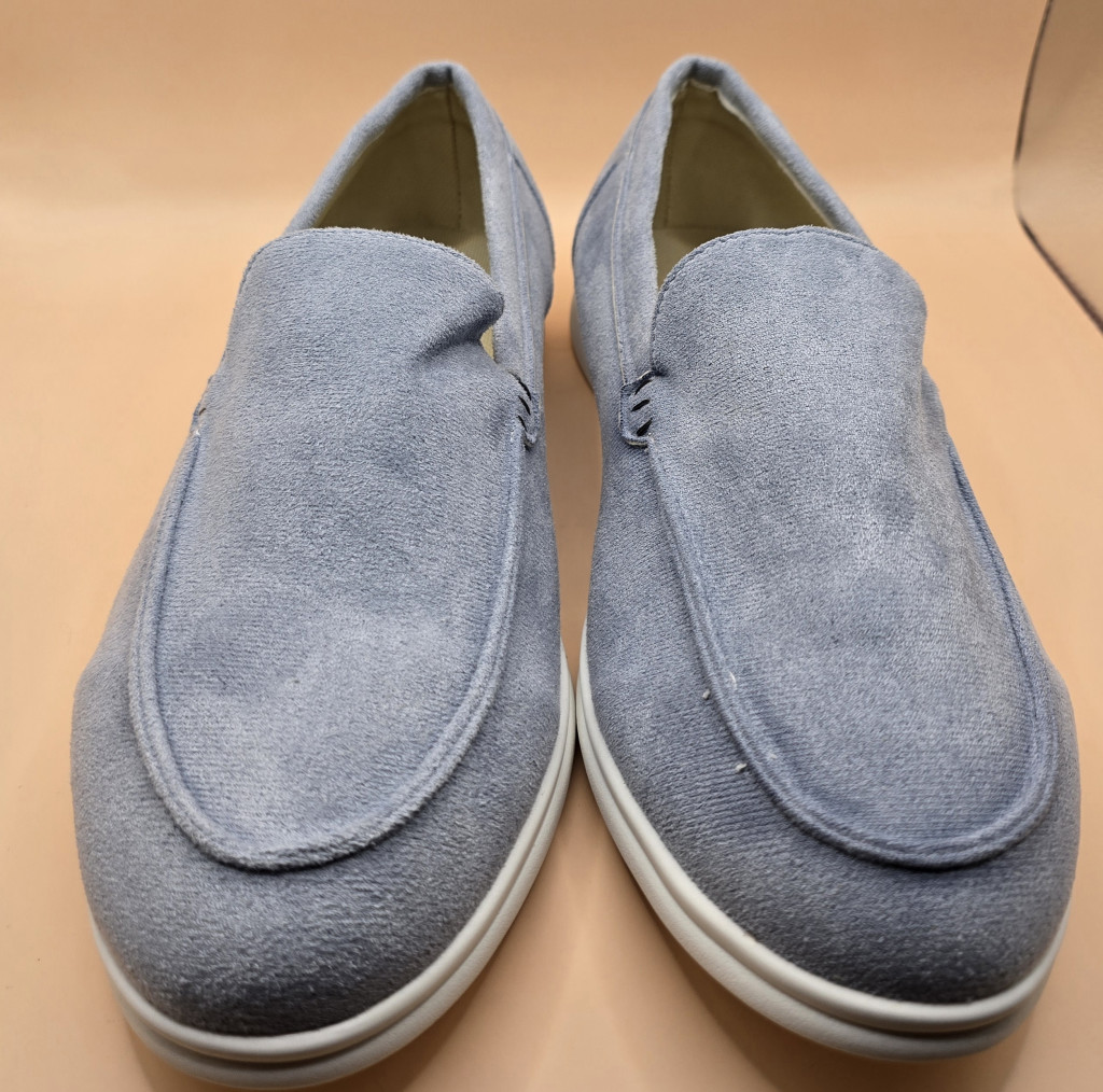 Válaszd a klasszikus európai stílust ezzel a kék, velúr hatású belebújós félcipővel! Ez a modell a visszafogott luxus jegyében készült: letisztult formavilága és elegáns kék színe miatt az „Old Money” esztétika alapdarabja. Tökéletes választás vászonnadrághoz, inghez vagy egy könnyed nyári zakóhoz.