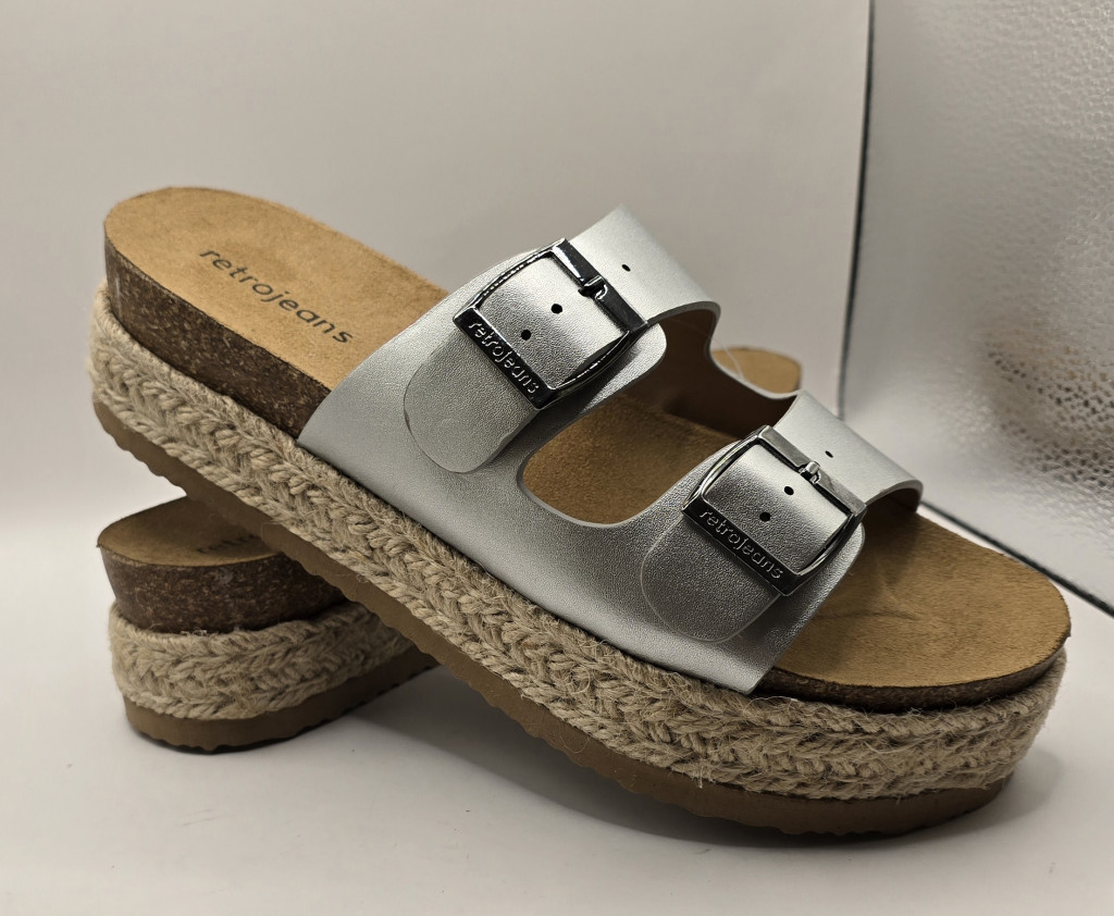 Tedd emlékezetessé a nyári szettjeidet ezzel a látványos Retro Jeans Kimberly papuccsal! Az elegáns ezüst (Silver) szín és a modern dizájn tökéletes kombinációja ez a modell, amely a kényelmet és a stílust ötvözi. Legyen szó egy vízparti pihenésről, egy könnyed esti sétáról vagy a mindennapi teendőkről, ez a papucs garantáltan a kedvenced lesz. A jellegzetes Retro Jeans márkajelzés és a fémes csillogás egyedi, prémium karaktert kölcsönöz a megjelenésednek.